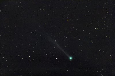 an emerald green head, and a colorless gas tail over three degrees