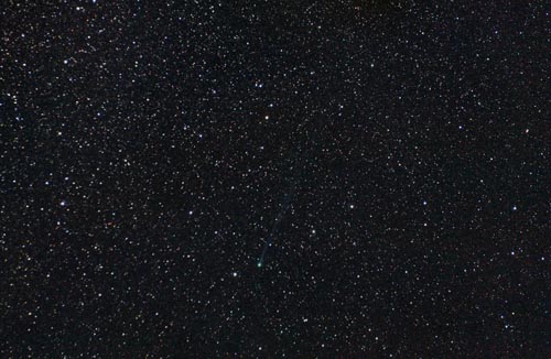 easily seen naked eye, around 5th magnitude. The ten minute exposure