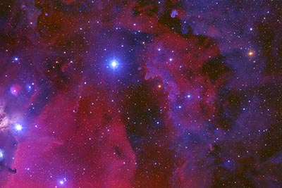 mix of emission and reflection neblosities overlays a huge red