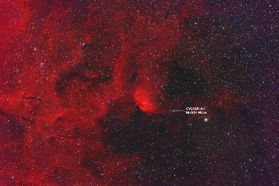 (The Tulip Nebula) in Cygnus, with the binary star that contains