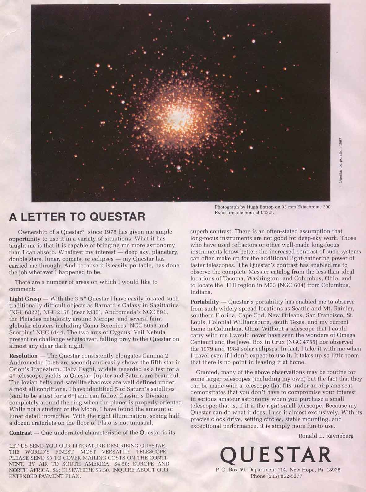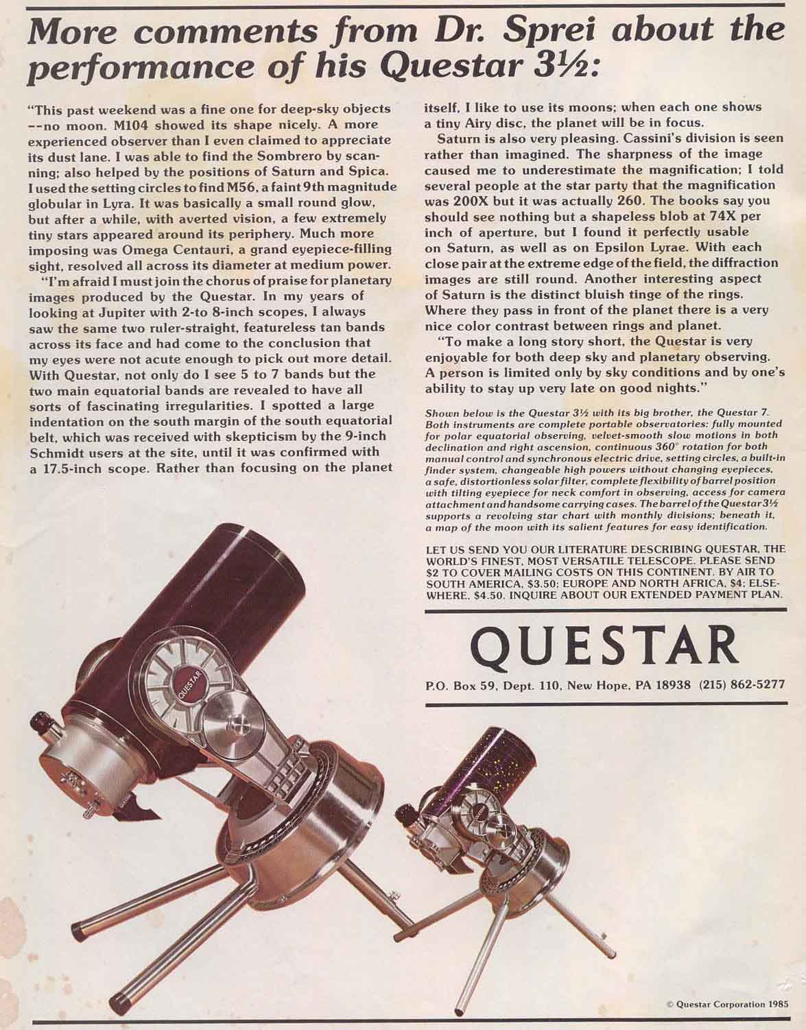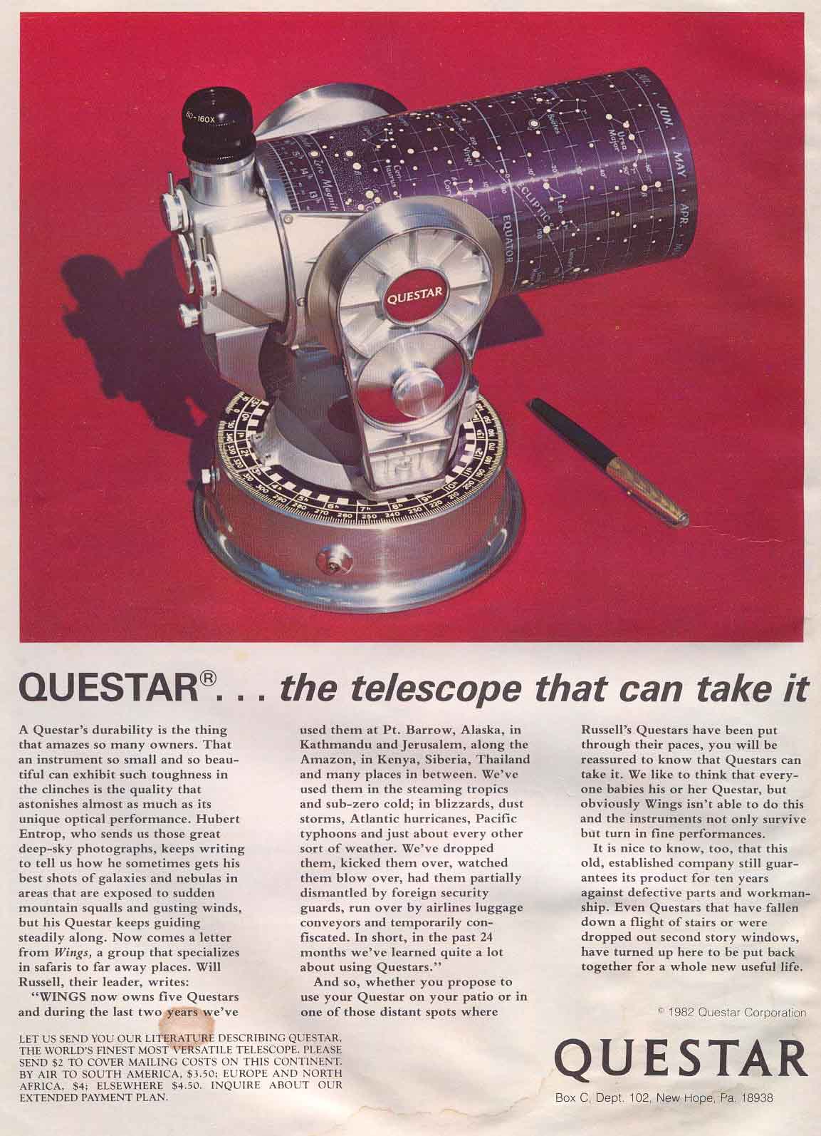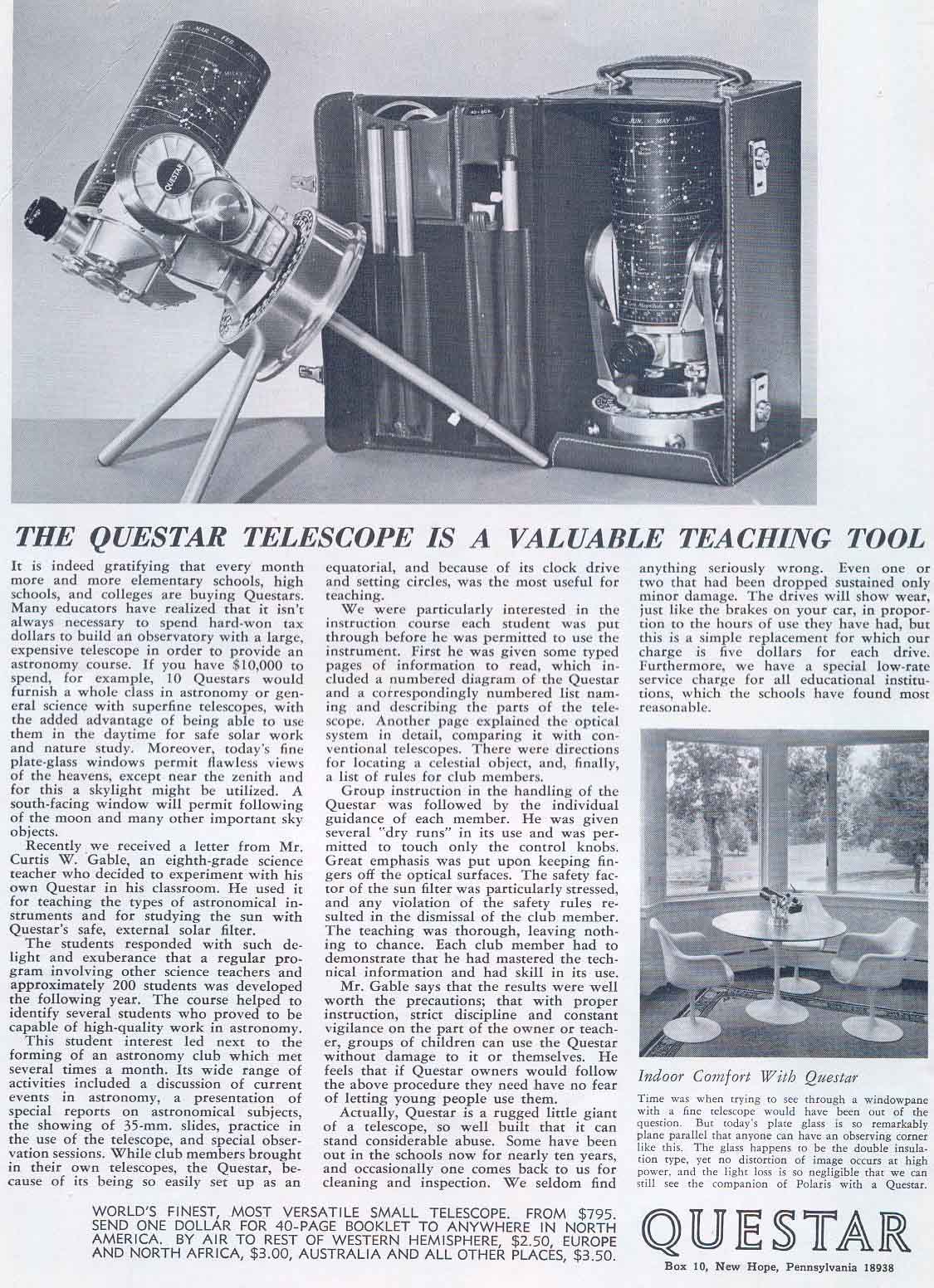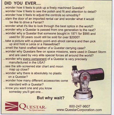 Our Questar was made in December of 1960 and Im still looking for an add for that year....