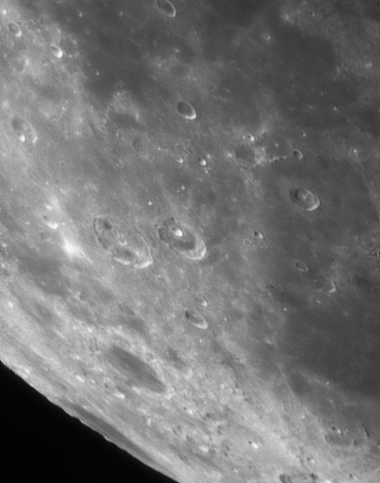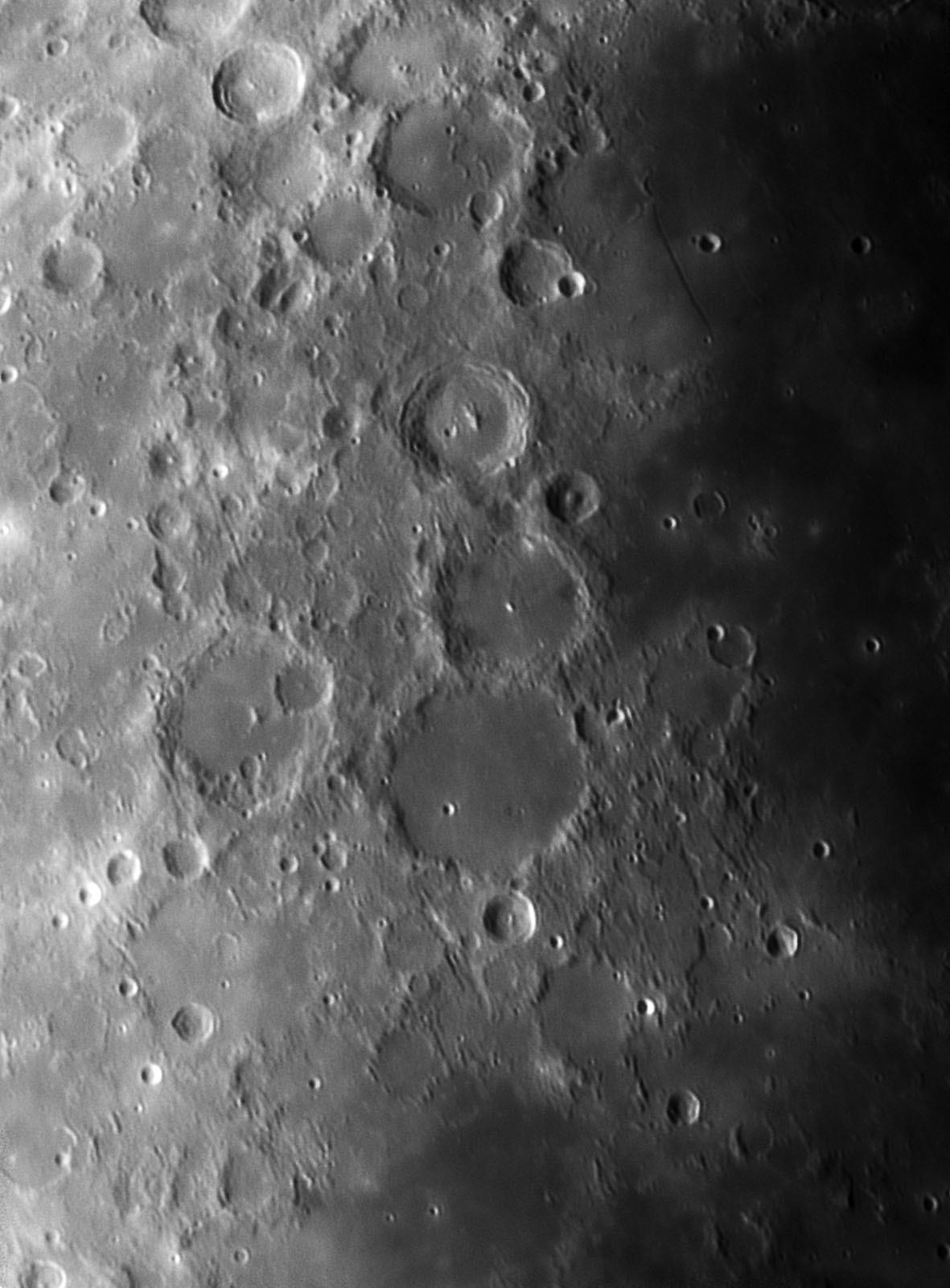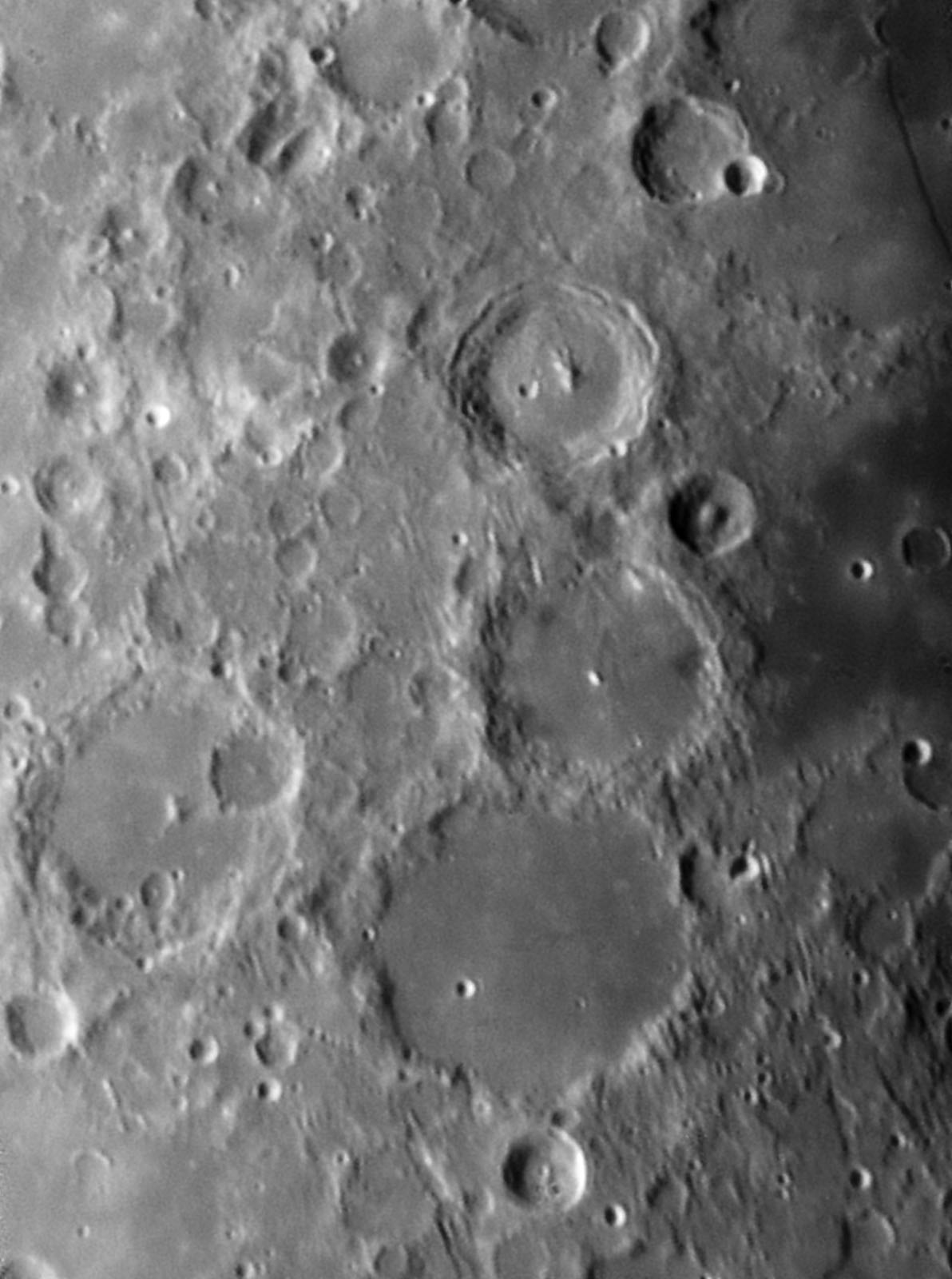 My favorite ringed basin triplet on the lunar surface (Alphonsus group), and straight wall on the right
