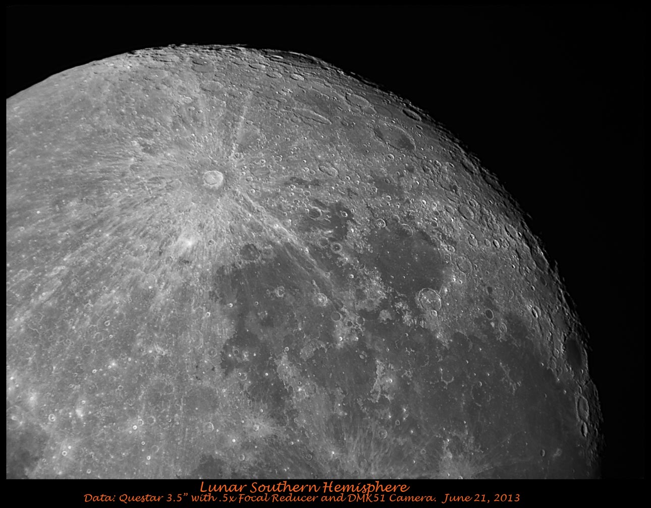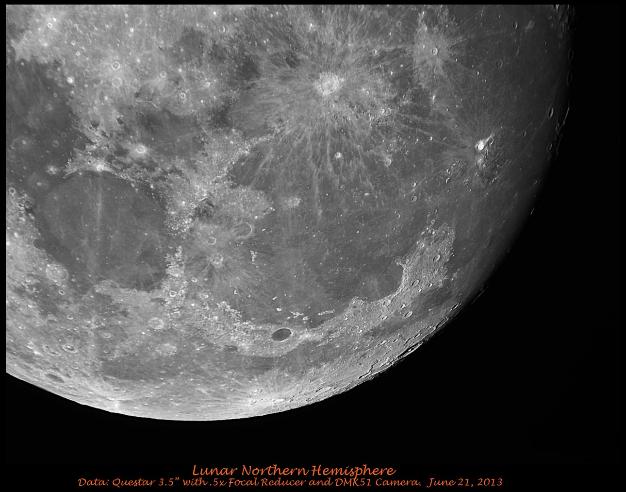 Copernicus and Keplers ejecta patterns are brilliant in the high noon day sun