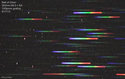 three belt stars of Orion on the left have corresponding spectra