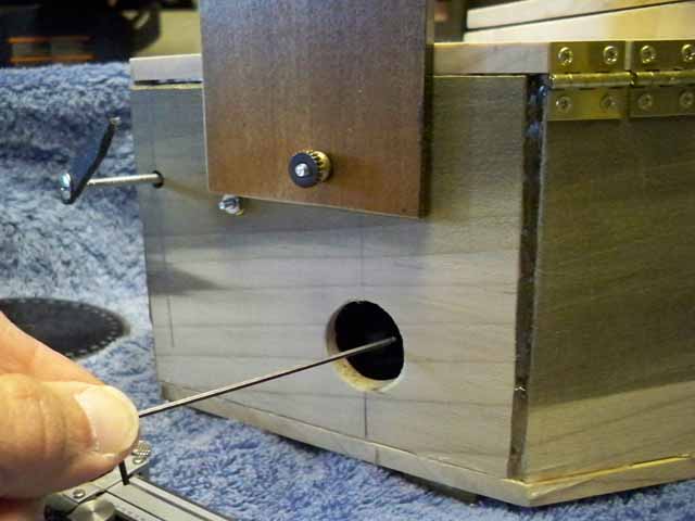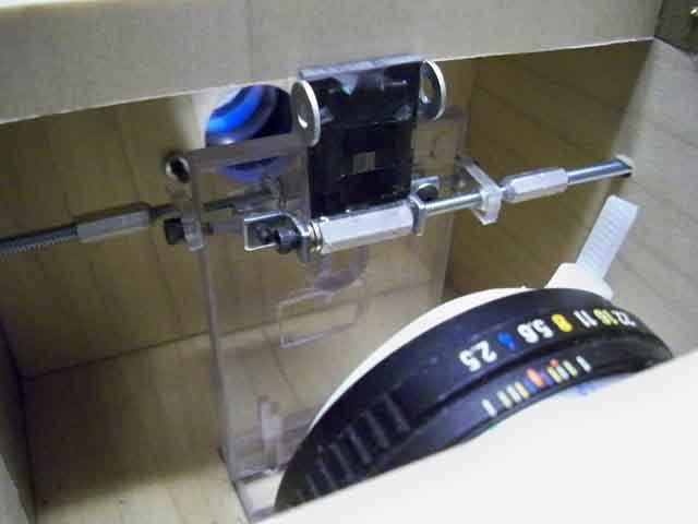 of the box is another brass knob. THIS one flips the 25 micron