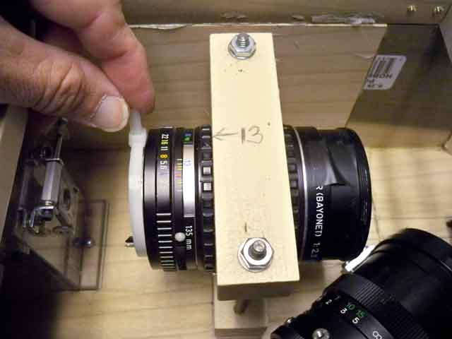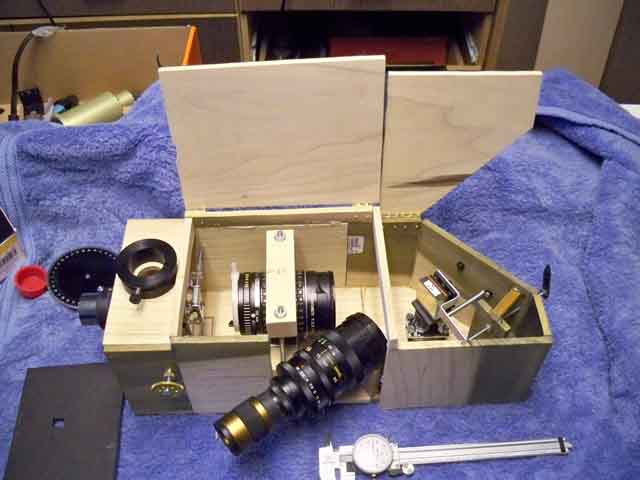 half is the slit, collimator lens (135 mm f/2.8 camera lens),