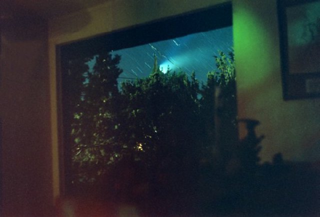March 29, 1997 - 50mm f/1.4, 1 min. This is one of those shots you always wanted to take right? I set the camera up in my living room and shot the setting comet through the window! Perhaps not everyone wants such a shot, but Im not just everyone...