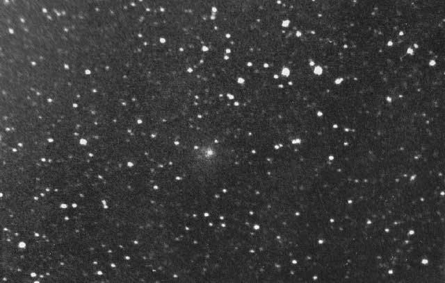 August 14, 1989, 14" f/5 Newtonian, 15mins on Hypered 2415, offset guided on stars to keep comet motionless. COMET BRORESEN METCALF