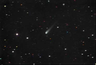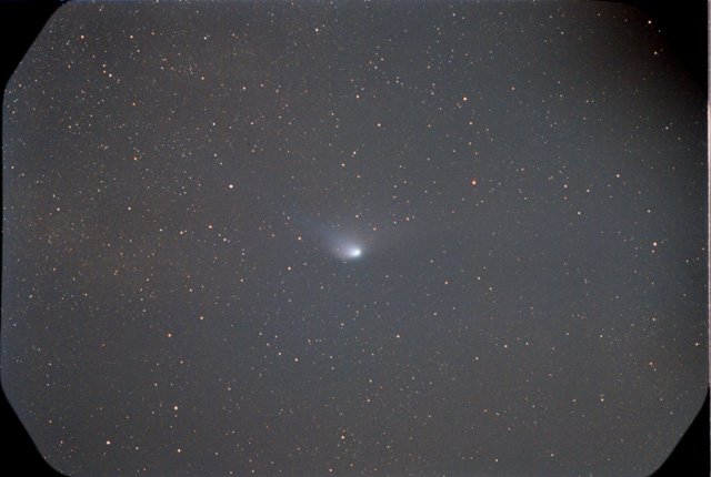 February 15, 1997 - 5.5" schmidt camera, two 5 minutes shots combined by sandwiching negatives. This second shot taken after the last shot is with the film holder oriented 90 degrees for more tail detail.