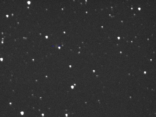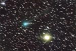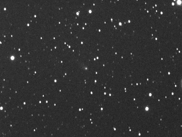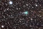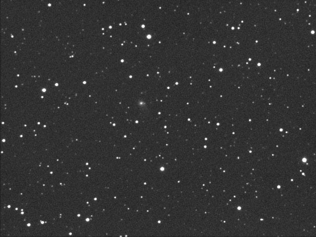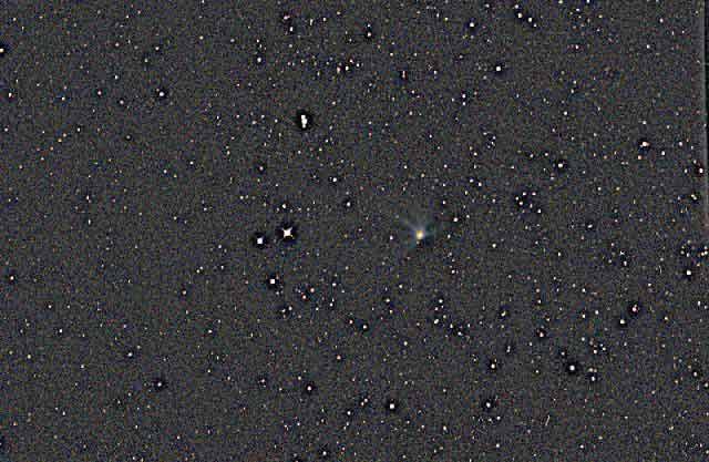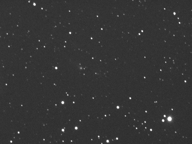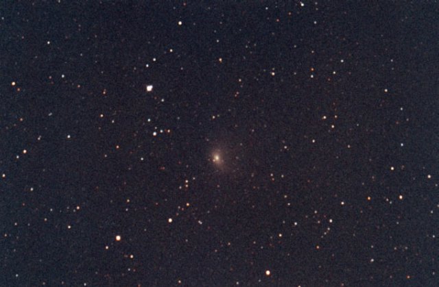 Comet Linear T2 in Hercules, 10-16-00. 6" f/3.6, SBIG237 CCD 2x5mins. The next evening, the comet moved about half a degree.