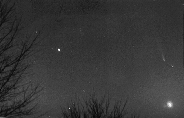 March 27, 1976, 135mm f/2.8 10 mins on Tri-x film, Highland Michigan COMET WEST