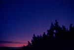March 18, 1997 - Evening shot same day as above morning shot showing the progress of the comets evening apparition setting over the trees. Hints of the ion tail are finally appearing, and this shot also reveals the unique aspect of the horizontal tail in the sky after sunset. 135mm f/4, 5 mins on Kodak Pro 400ppf.