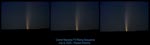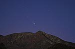 Latest uploads of images from Four Peaks Road in Central Arizona of the comet rising in a very reddish morning twilight just over Four Peaks Mountain. The comet was 3rd magnitude, and exhibited a 1 degree tail in 7x50 binoculars. Here is a multi part rising sequence of that event at 6:05 to 6:15 am MST. All shots are with a 135mm f/2.5 telephoto on a tracking mount on hypered Kodak Pro400ppf film. Shot by the author. Please be certain to view them with a 24bit viewer for best effect!