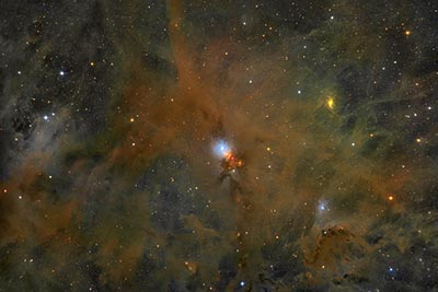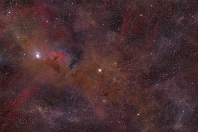 deep red Herbig Haro objects just south. Note the interesting