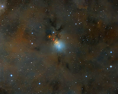 NGC1333 is filled with a huge amount of dust and gas. Here, one