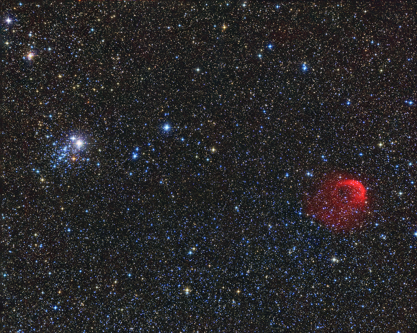NGC457 and Sharpless 2-188 - The Owl Cluster and Dolphin Nebula