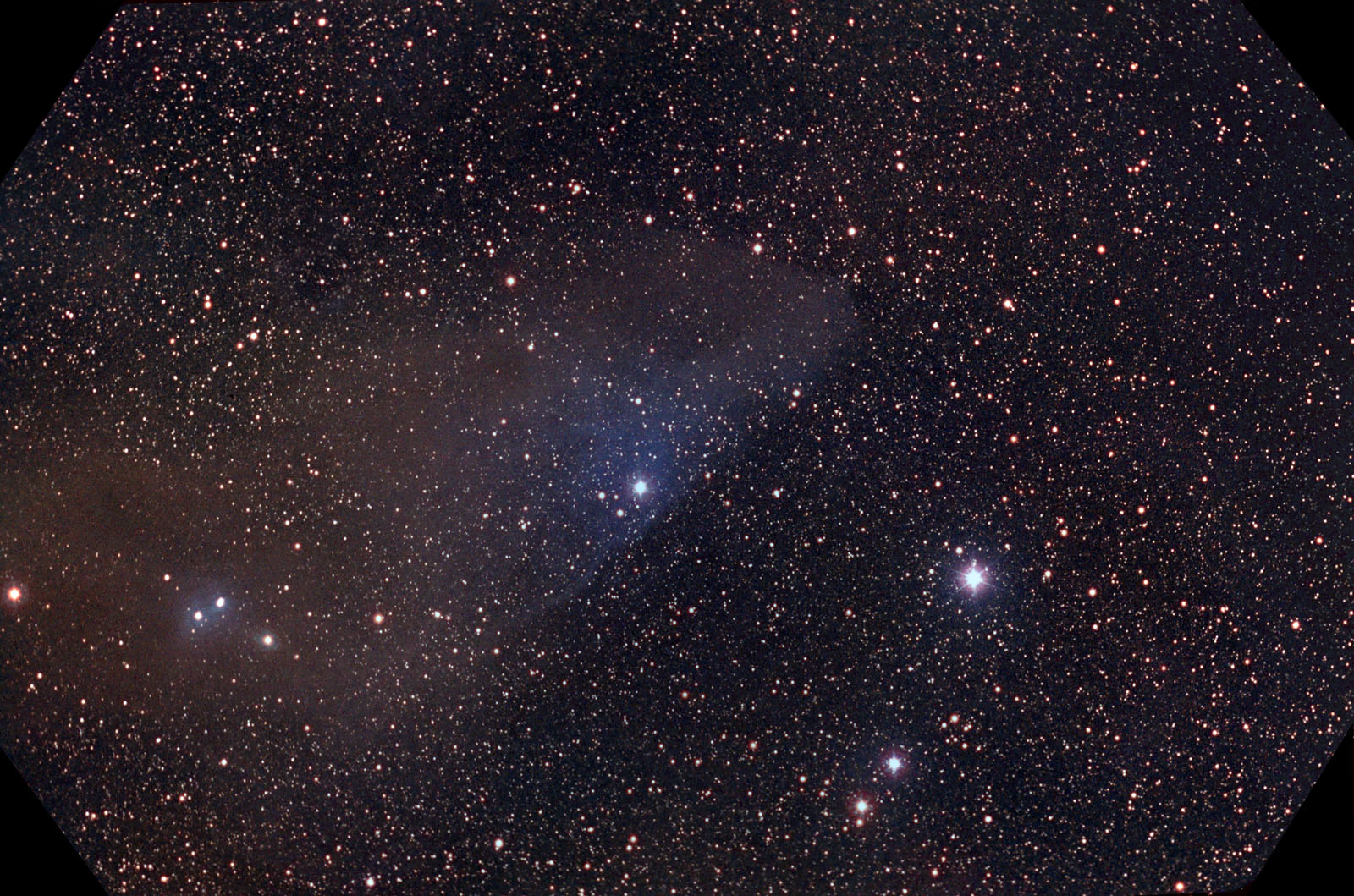 Instrument: 8" f/1.5 Celestron Schmidt Camera Platform: Homemade GEM Film: Kodak Supra 400 CCD Autoguider: ST4 Exposure: 4x8mins Filters: NONE Location: Happy Jack, Arizona Elevation: 6800 ft. Sky: Seeing 8/10, Transparency 8/10 Outside Temperature: 40 F Processing: Photoshop, PixInsight Pro. HOME SCHMIDT GALAXIES EMISSION NEBS REFLECTION NEBS COMETS GLOBULARS OPEN CLUST PLANETARIES LINKS