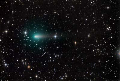 yellowish dust tail is seen here pointing to the right, and we