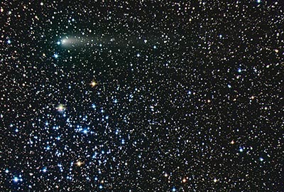 M35 in the feet of Gemini. Taken at 2:30am, the comet is curretly