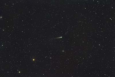 up just below Leo and shows a curved dust tail about a degree