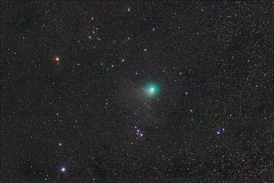 Now beaming at magnitude 7, the comet has a very faint gas tail,
