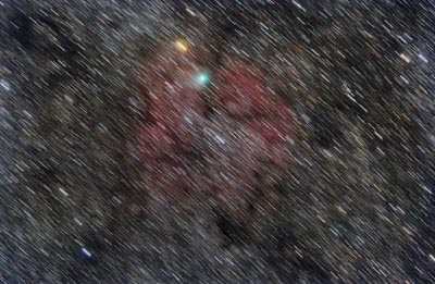 for comet Jacques, superimposed on the faint red nebula IC1396