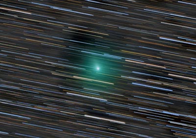 in the final image. The comets rapid motion across the sky is