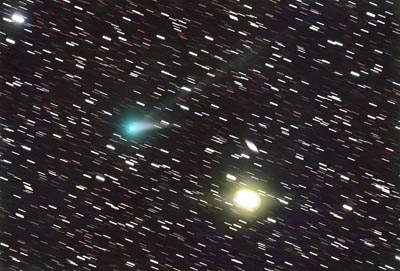 stellar backdrops. Here, the comet is zooming past the bright