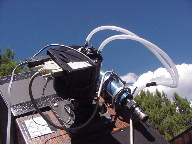The business end of the 12.5" f/5. The ST7E is seen attached here, with all of its cables and water cooling hoses. An 8x50mm finder, and JMI DXF2 focused are key elements.