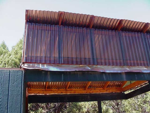 Close up of the roof rolled off, showing smoked lexan windows and galvanized steel roofing to shed snow.