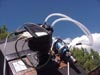 Water tub with submersible fountain pump used to drive the 3/8 vinyl hose into the camera for cooling. As long as the water is 75 degrees or cooler, the action will be very effective.