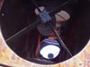 Looking down into the end of the tube you can see my fiberglass secondary support, and the cooling holes covered with black cloth.