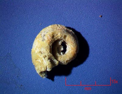 tiny crinoid ossicles were found amongst the acid fines. |