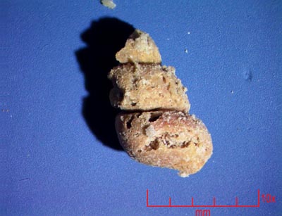 limestones, many were hollow with thick shells. |