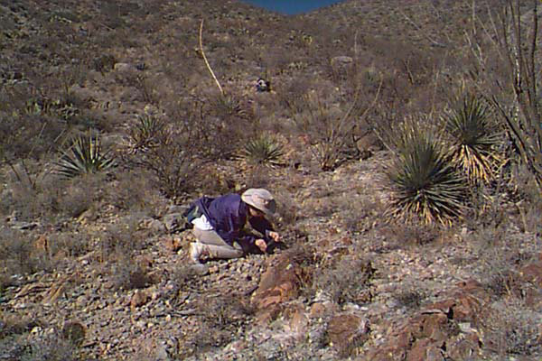 Dawn collects Ordovician fossils in the El Paso at Dos Cabezas