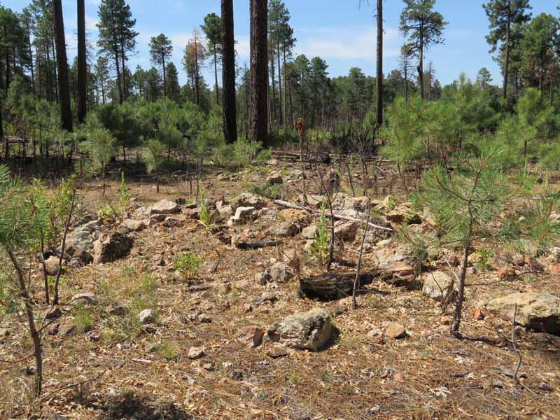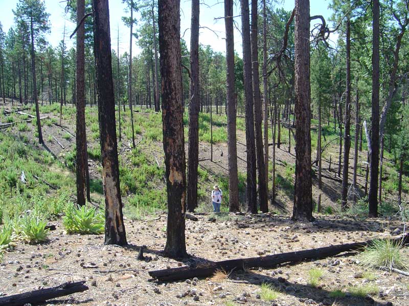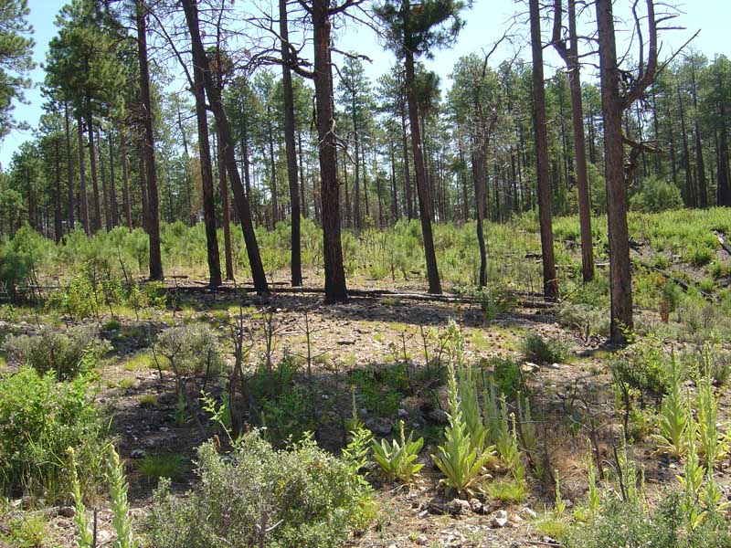 Up on the Mogollon Rim, at 7200 feet elevation consisted mainly of Ponderosa Pines. There had been a large fire years before, and the