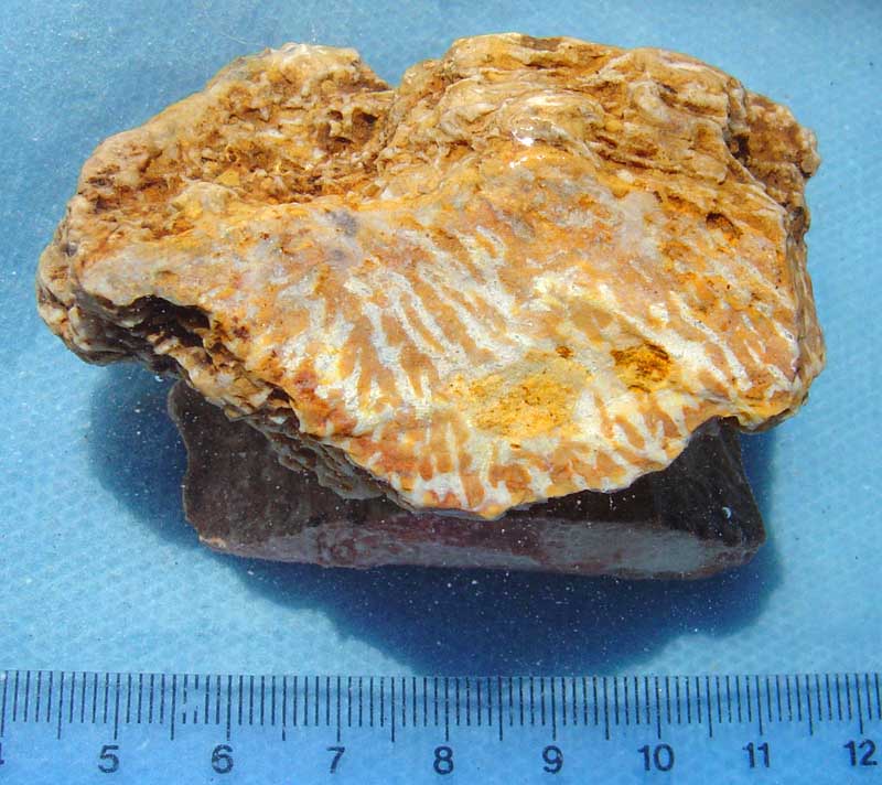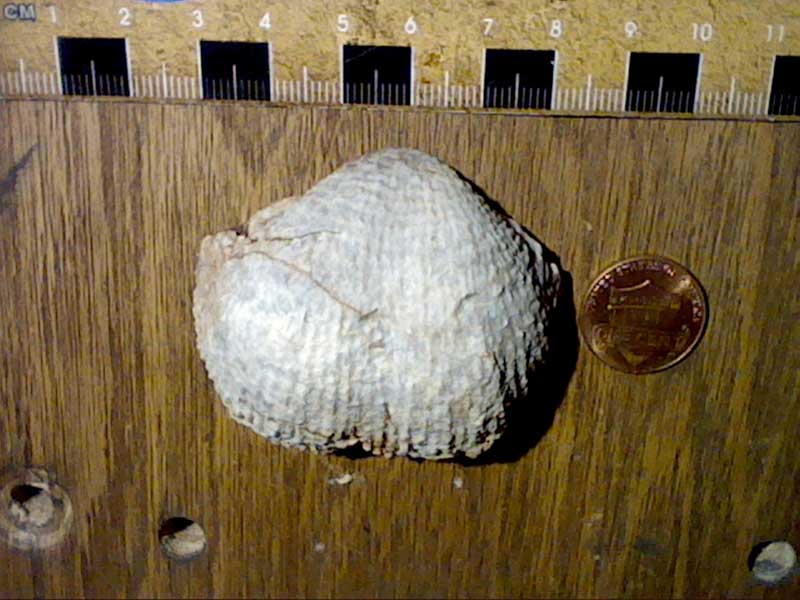 Nearly 100% of all productids found had both valves intact. This is the bottom of the brach, which is very flat compared to the top: