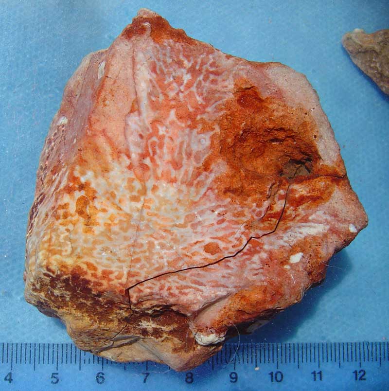 The other type of spine found was ribbed on its exterior and were easily degraded by the taphonomy of preservation: