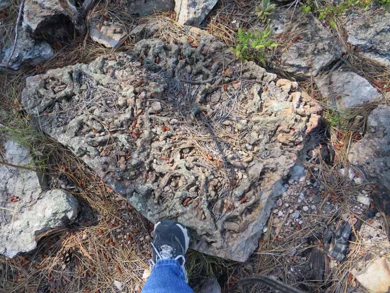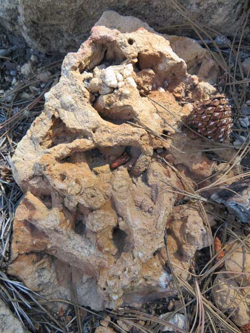 The ground is covered with cherts, and dolomite pieces. This magnesian limestone will not dissolve in acids.