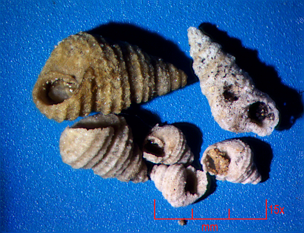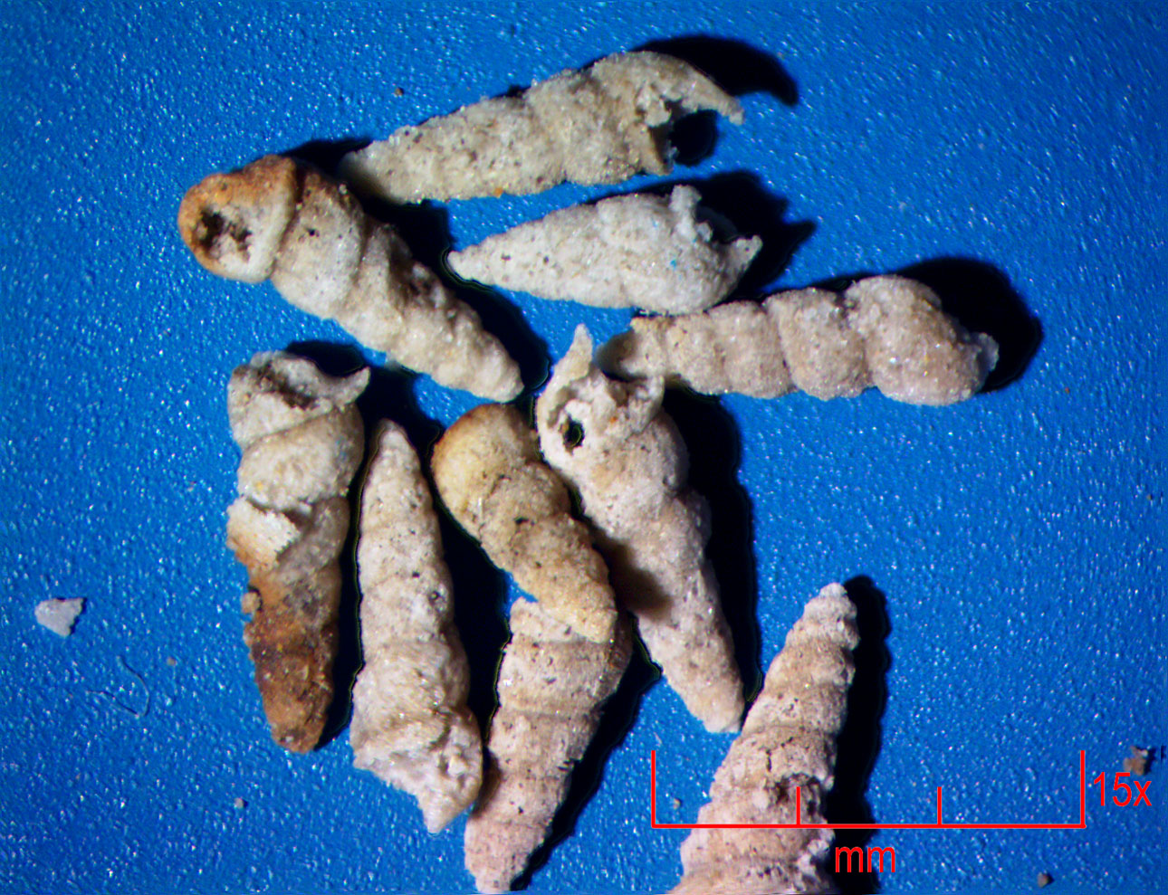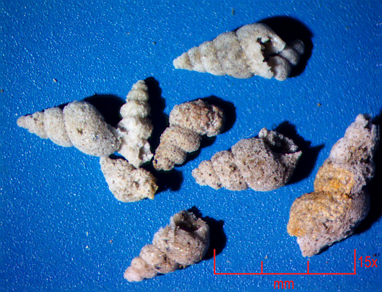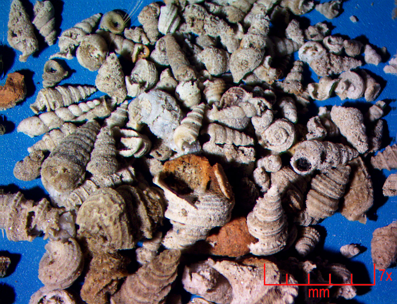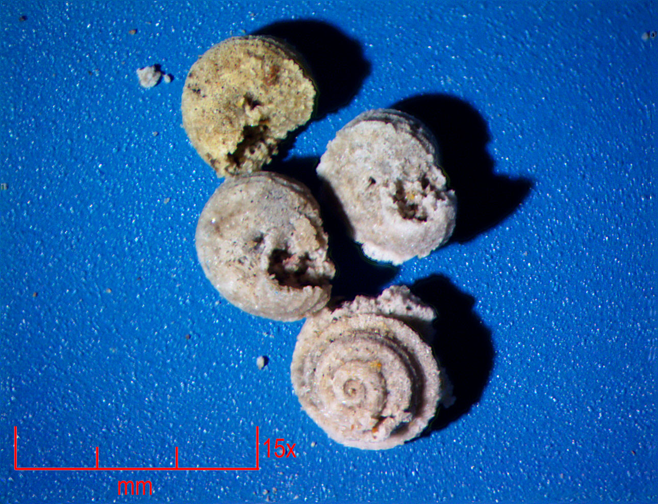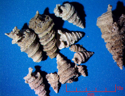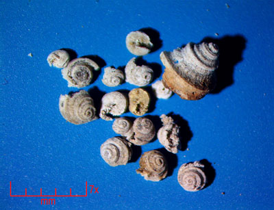 10. Half a dozen Straparollus gastropod juveniles and sub adults