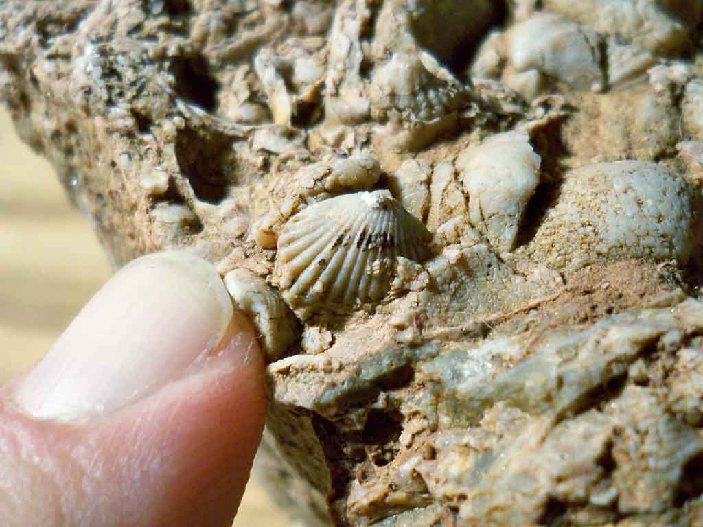 block of limestone with hundreds of brachiopods was a prize find. |