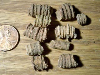 half inch diameter crinoid stems. Many of them were long unbroken
