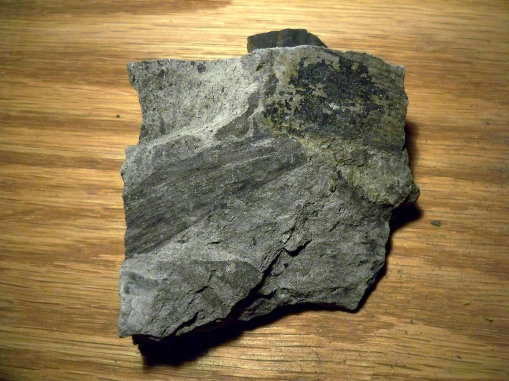 mica like flakes embedded, It fell apart in small flake like