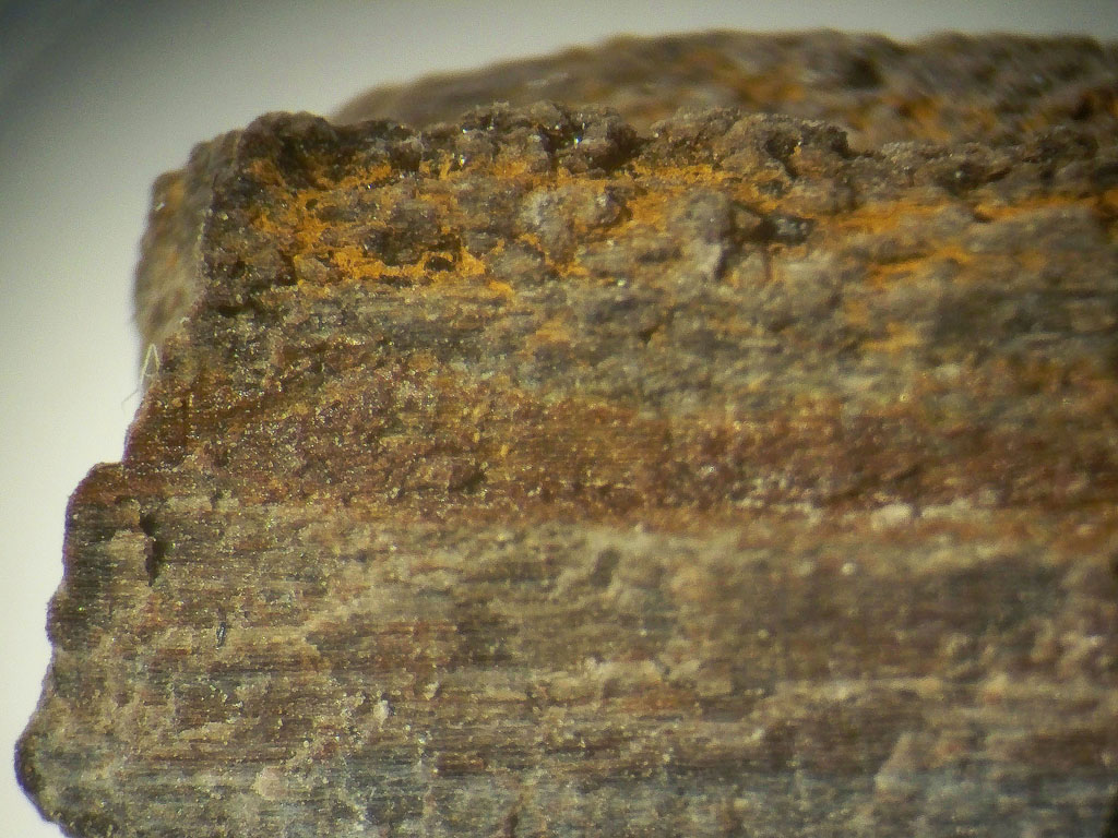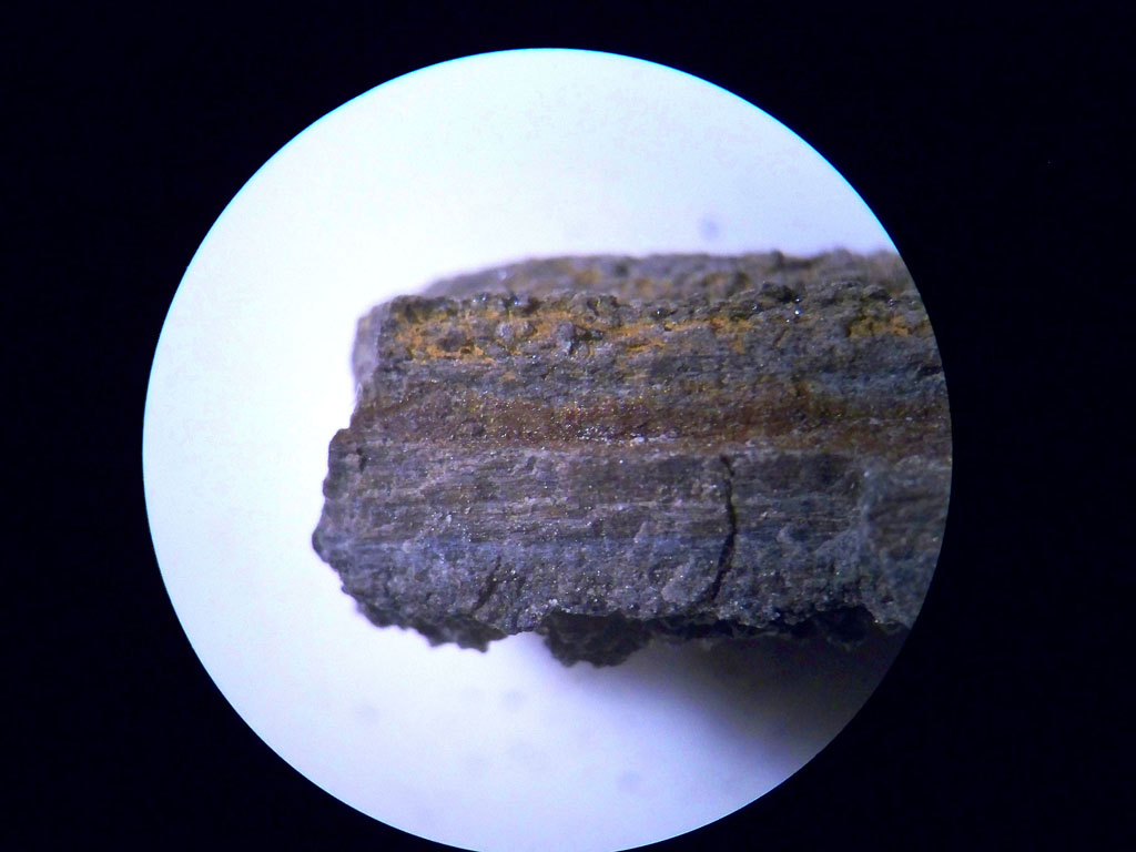 can be seen to be very fissile and breaks apart along some thin