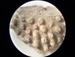 up under my stereo microscope of one of the crinoid basal plates. |