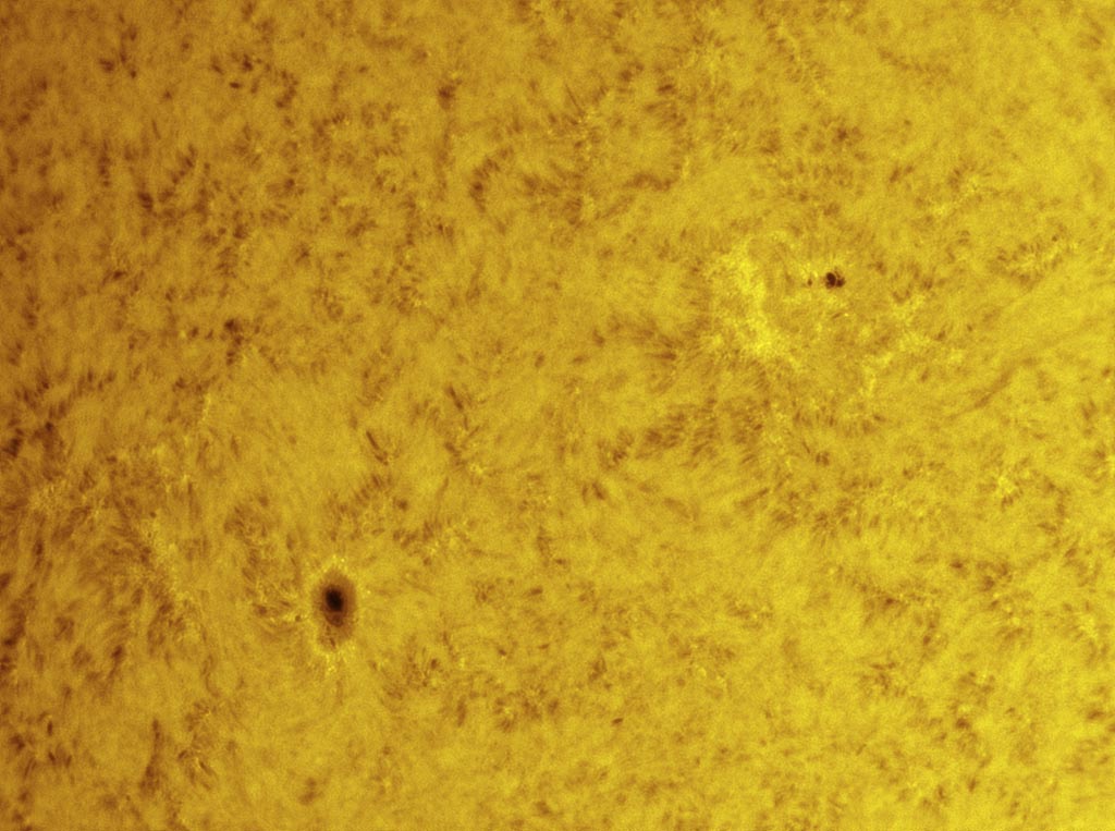 the view of the small sunspot group in the Red Wing of Halpha