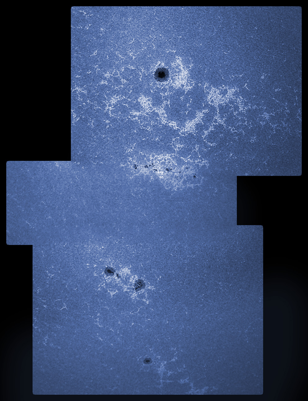 4 parts to avoid the edge vignetting, and shows tremendous faculae