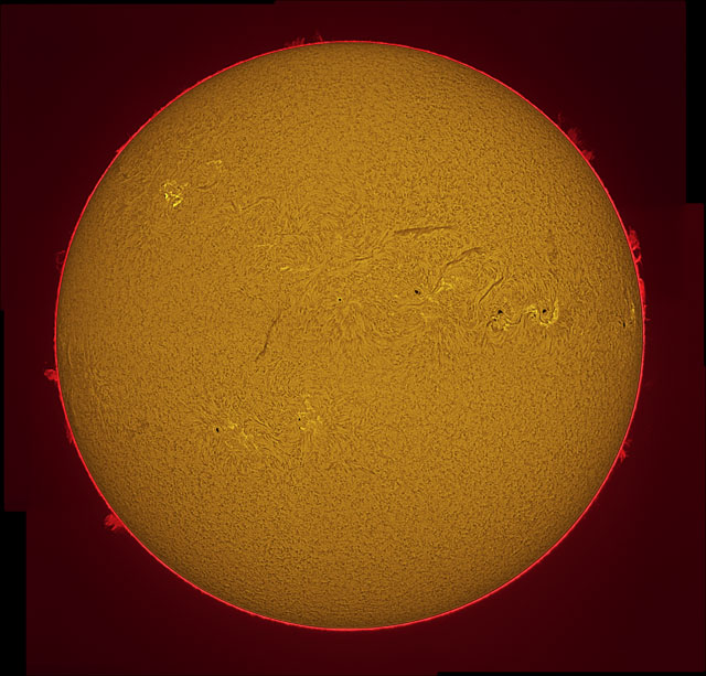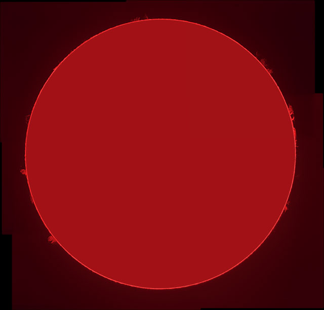 Here is the entire limb of the sun processed in the manner described. Sharp and crisp, when the seeing was very poor. And no dark limb artifacts.