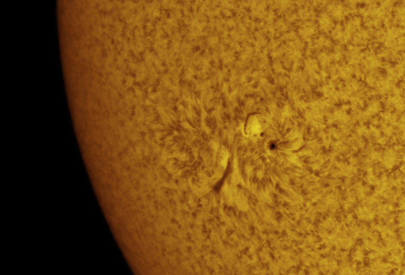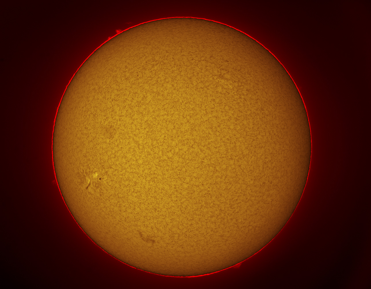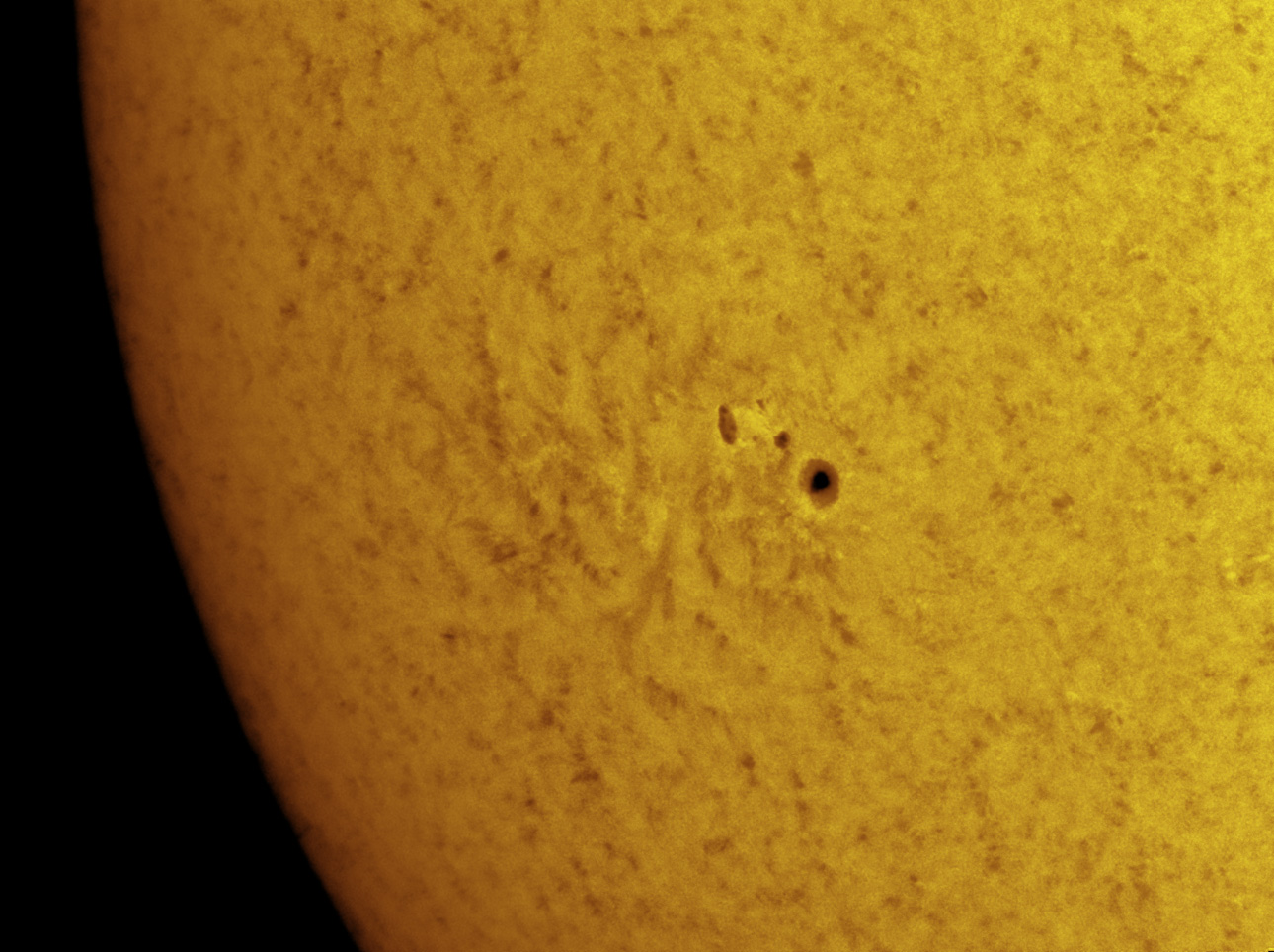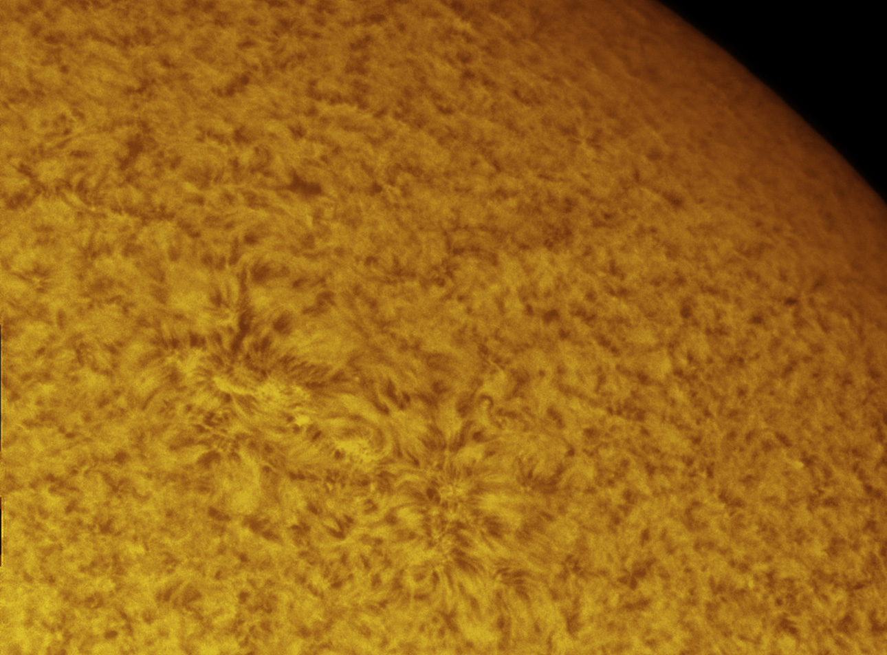 The small group of sunspots are on the lower left here, and a