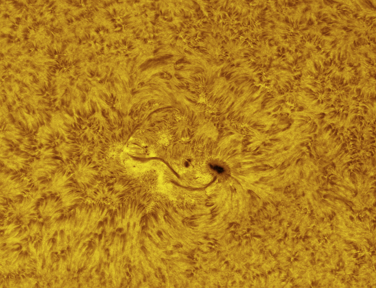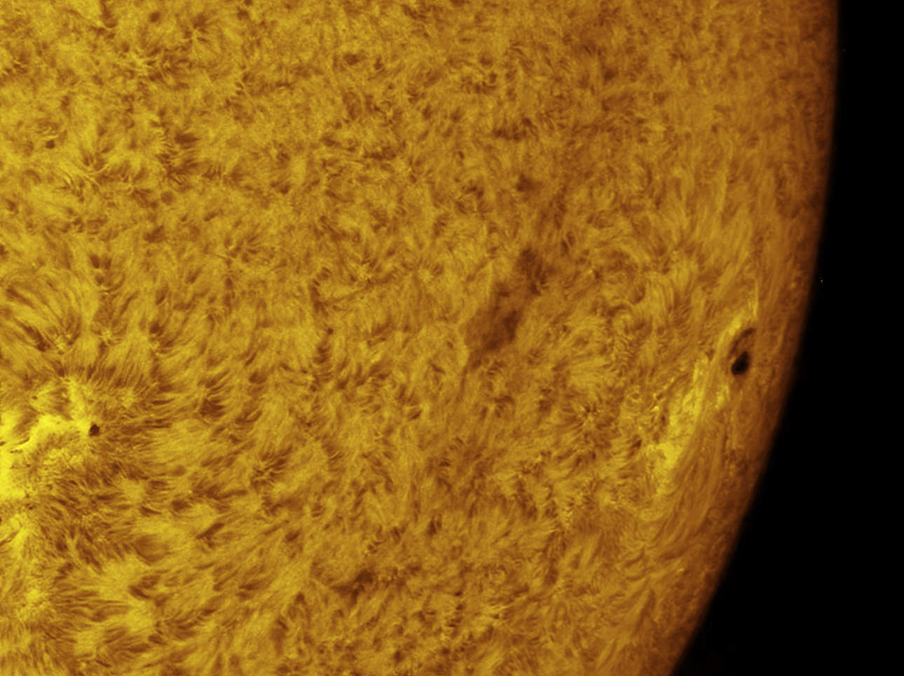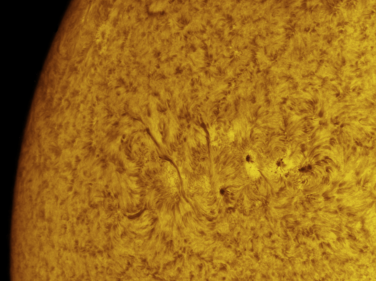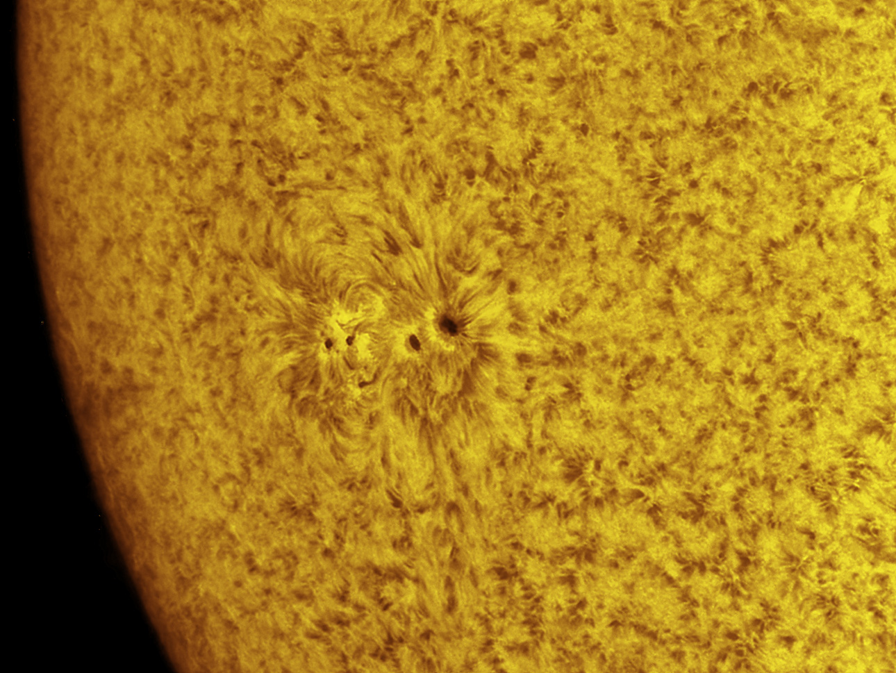amazing pile of small sunspots in a cluster. the fields are very